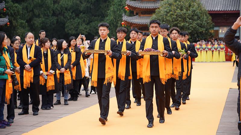 初獻禮環(huán)節(jié),41名兩岸學子敬獻書卷;亞獻禮環(huán)節(jié),20名兩岸各界人士代表上臺凈手上香,祈愿福澤盛世、國泰民安;終獻禮環(huán)節(jié),兩岸嘉賓向文昌帝君敬獻花籃。整個典禮莊嚴肅穆、精彩隆重,伴隨恢宏的《頌文昌》與祭祀樂舞,甲辰年文昌祭祀大典圓滿禮成。